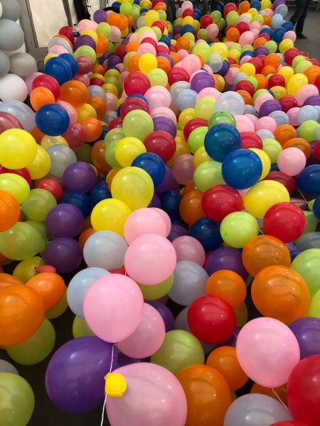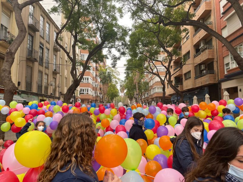 Antes d empezar a comer y después de estar toda la mañana hinchando cientos de globos, empezaba nuestra mascletà particular de colores con toda nuestra Delegación de Infantiles.